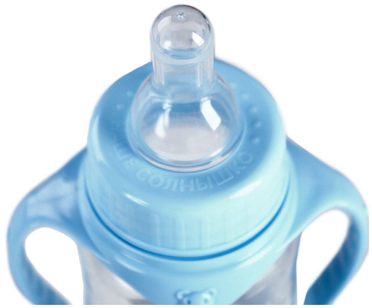 Бутылочка для кормления "Пингвинята"150 мл цилиндр, с ручками, цвет голубой 4403866