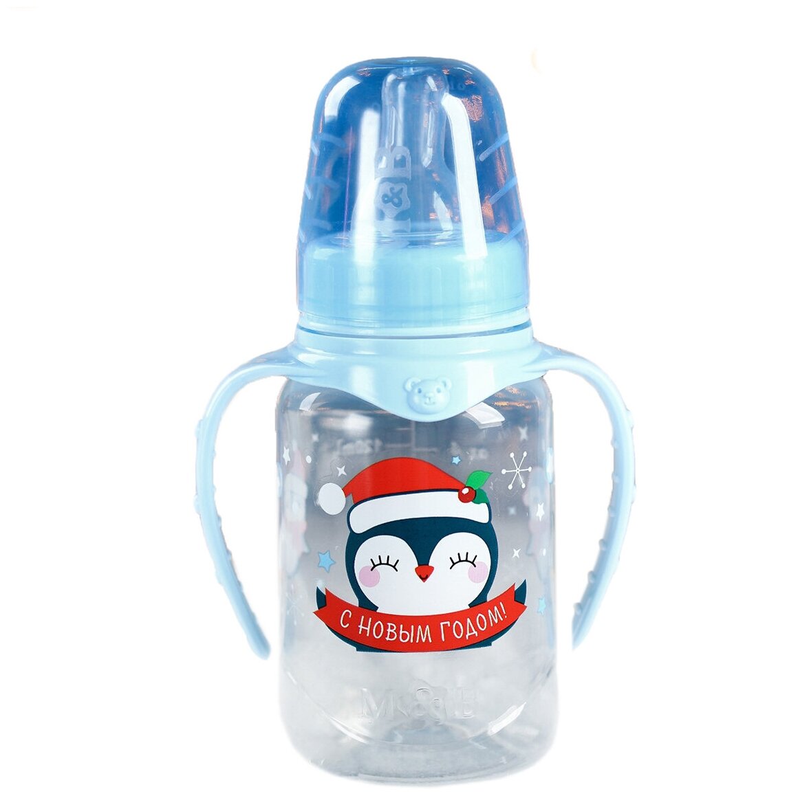 Mum&Baby Бутылочка для кормления «Новогодние пингвинчики» 150 мл цилиндр, подарочная упаковка, с ручками