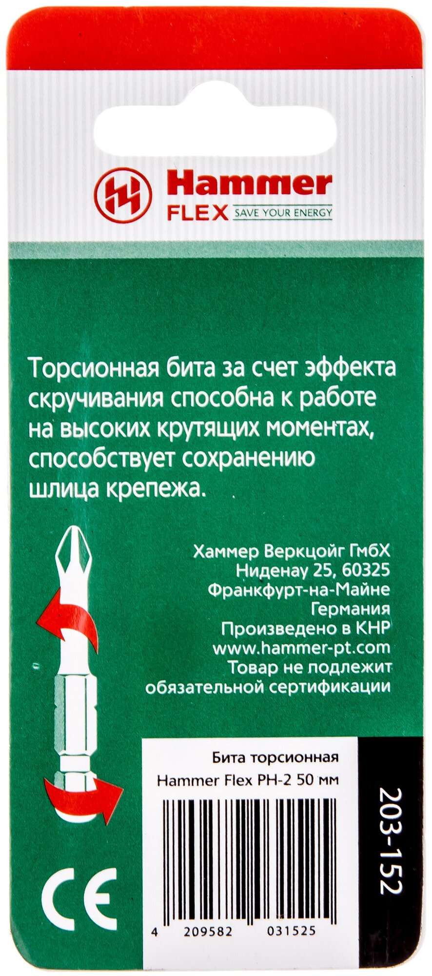 Бита Hammer Flex 203-152 торсионная PH-2 50мм (2шт.) информация: