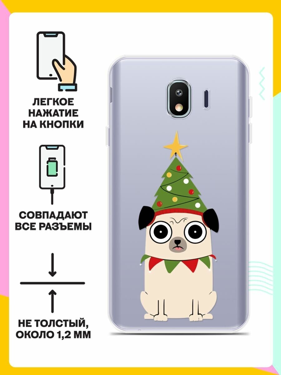 Отзывы на Силиконовый чехол на Samsung Galaxy J4 (2018) Елка-мопс / для Самсунг Галакси Джей 4 2018