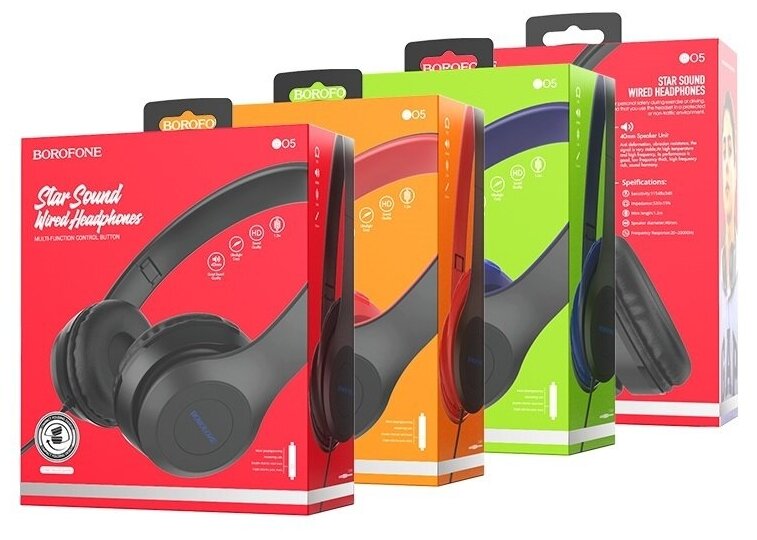 Проводные полноразмерные наушники BOROFONE BO5 Star sound, Jack 3.5mm, 1.2 м, черный, 15мВт, контроллер с микрофоном