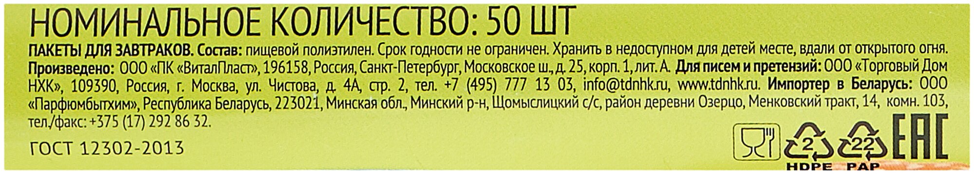 Национальная химическая компания (НХК) чистюля пакеты для завтраков 25*32 см 50 шт