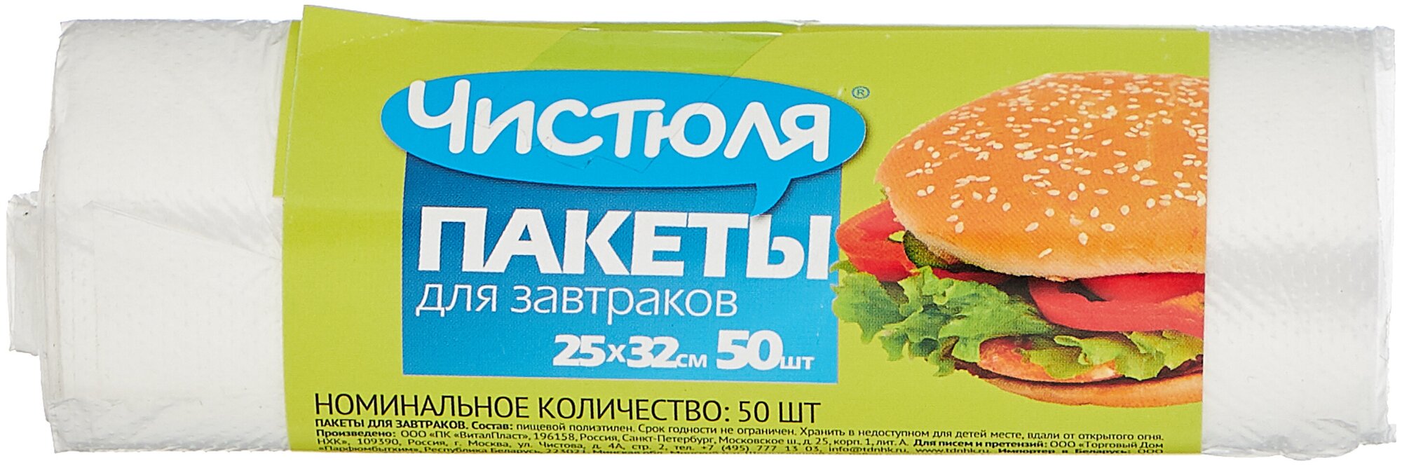 Чистюля пакеты для завтраков 25*32 см 50 шт
