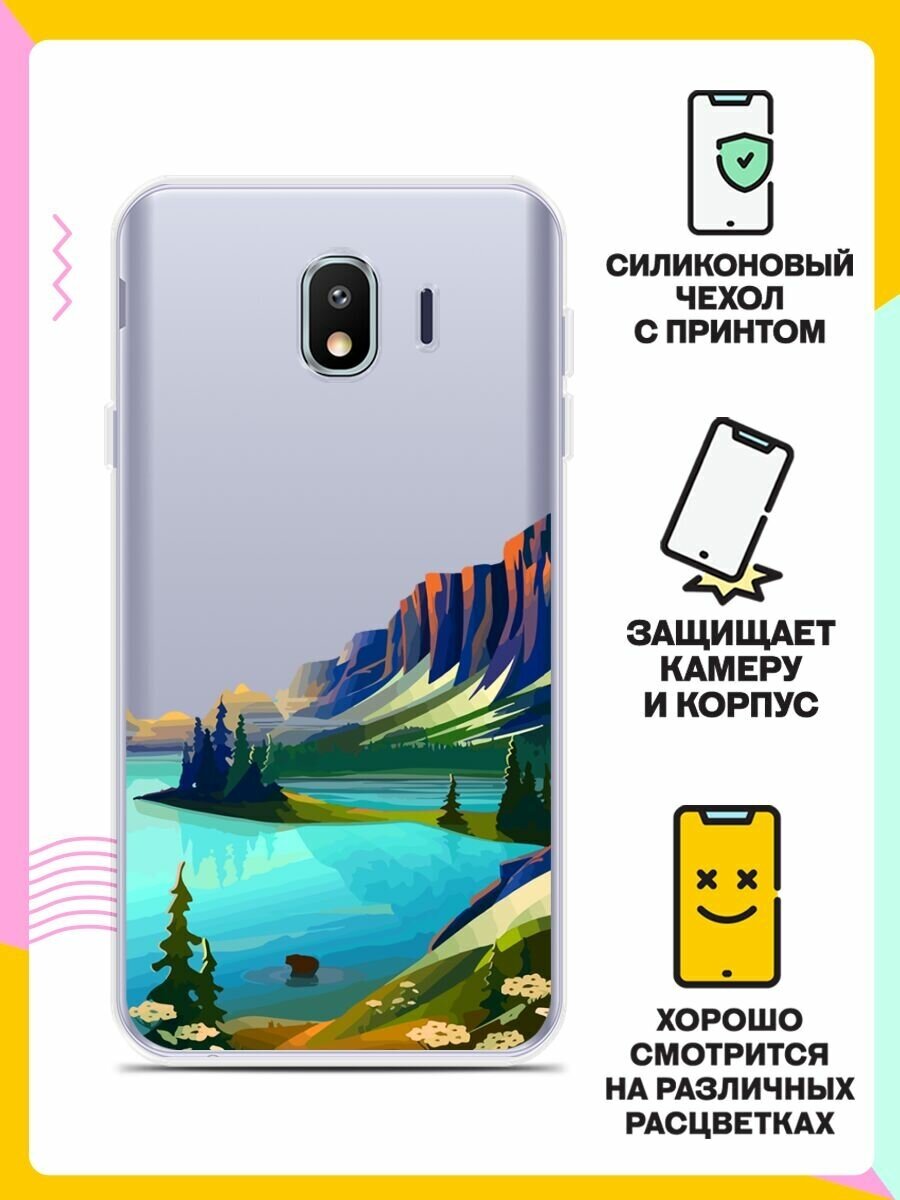 Отзывы на Силиконовый чехол на Samsung Galaxy J4 (2018) Озеро и горы / для Самсунг Галакси Джей 4 2018