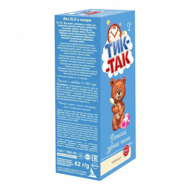 Свобода Тик-Так - Зубная паста детская баббл гам 62 г информация:
