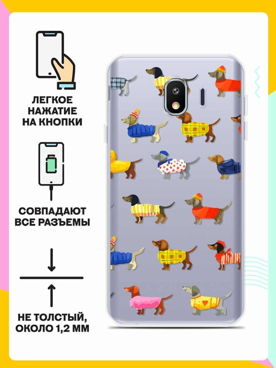 Силиконовый чехол на Samsung Galaxy J4 (2018) Одежда для такс / для Самсунг Галакси Джей 4 2018 информация: