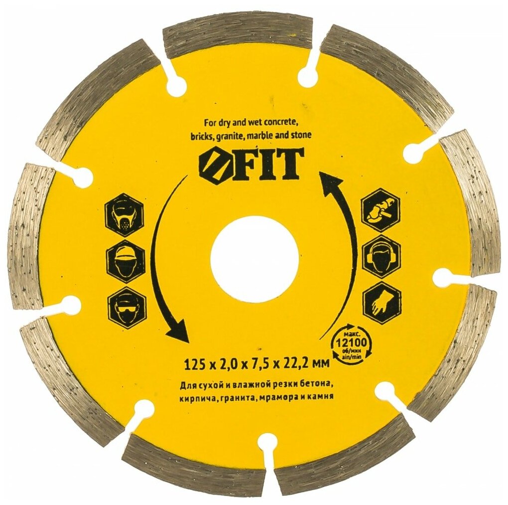 Диск отрезной алмазный сегментный (сухая и влажная резка) 125х2.0х7.5х22.2 мм | код 37463 | FIT ( 1шт )