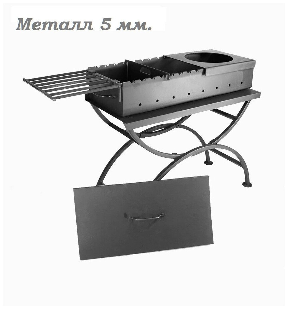 Комплект с мангалом №9 премиум чаша для мангала 800-5 мм., подставка под мангал, подказанник, полка-решетка, крышка, делитель информация: