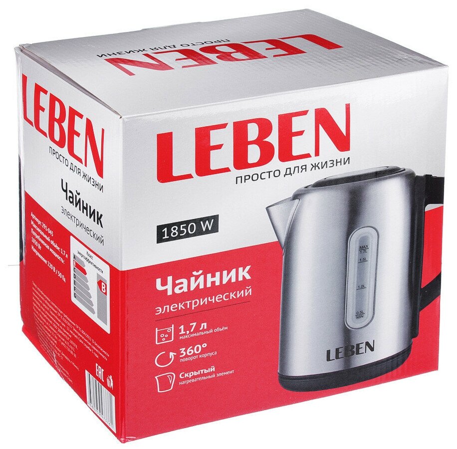 10 цен на LEBEN Чайник электрический 1,7л, 1850Вт, скрытый нагр.элемент, поддержание темп., сталь, T-9013C