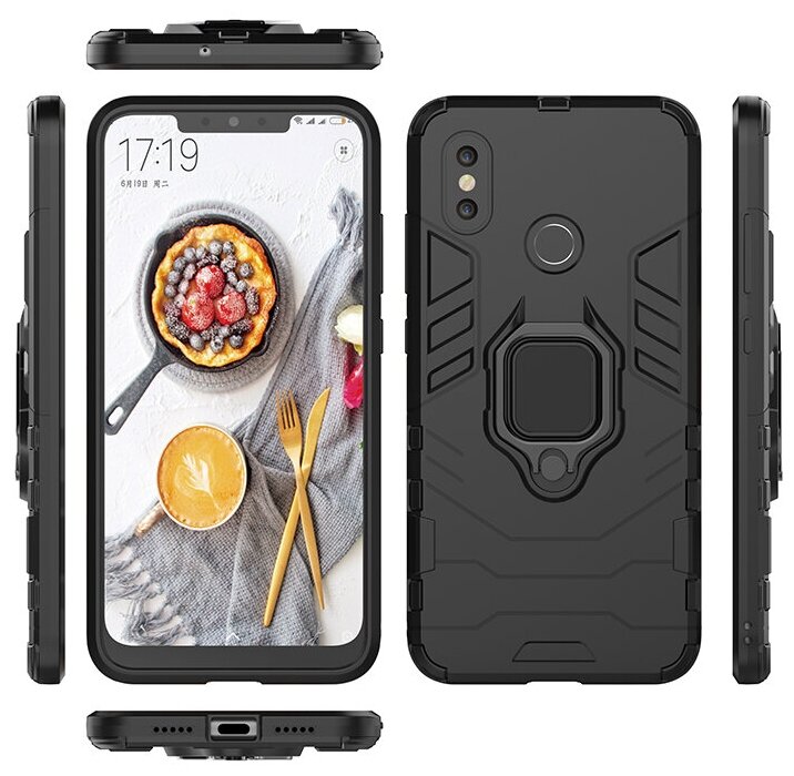Противоударный чехол с кольцом Panther Case для Xiaomi Mi 8 черный информация: