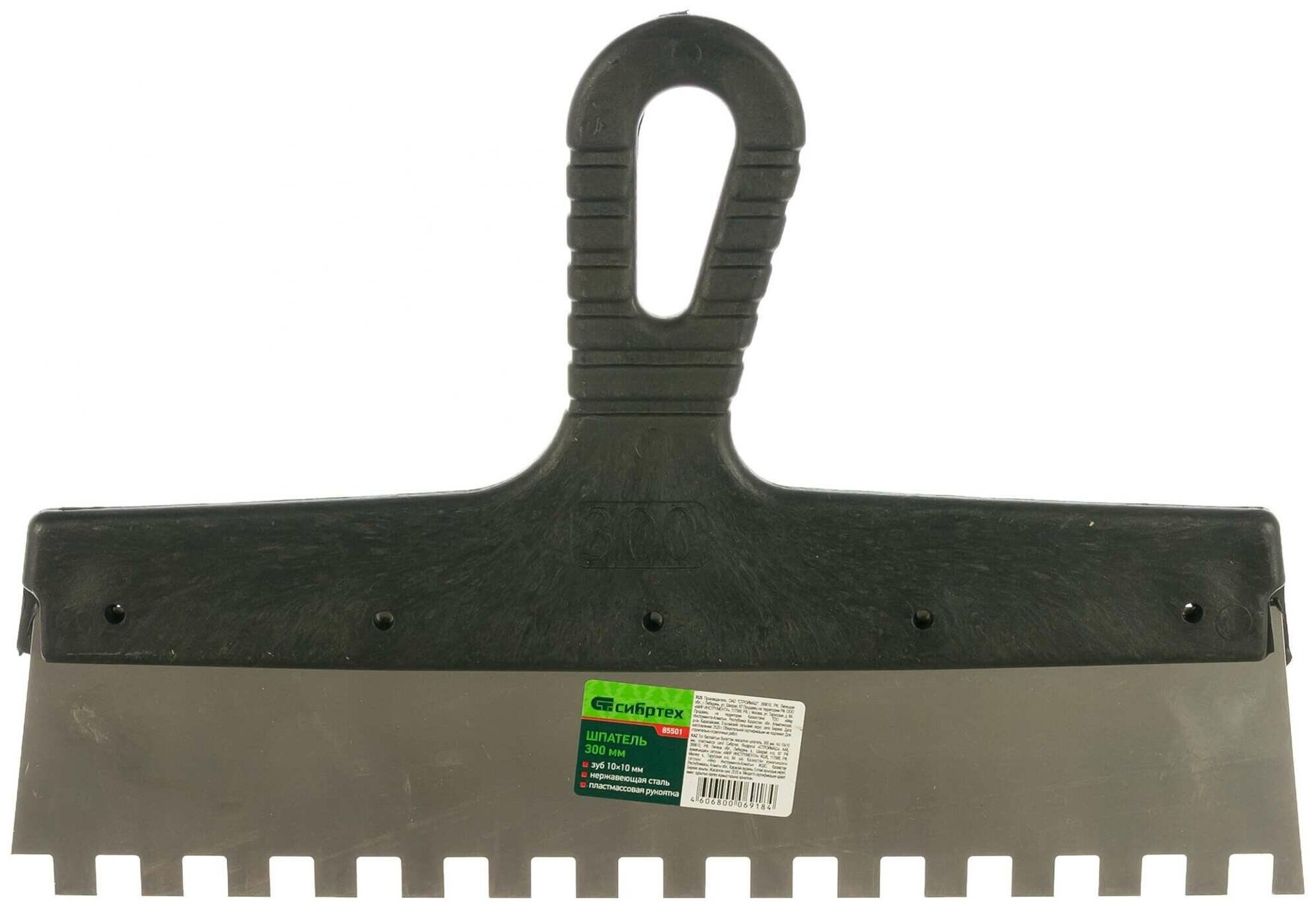 10 цен на Шпатель из нержавеющей стали, 300 мм, зуб 10х10 мм, пластмассовая ручка// Сибртех