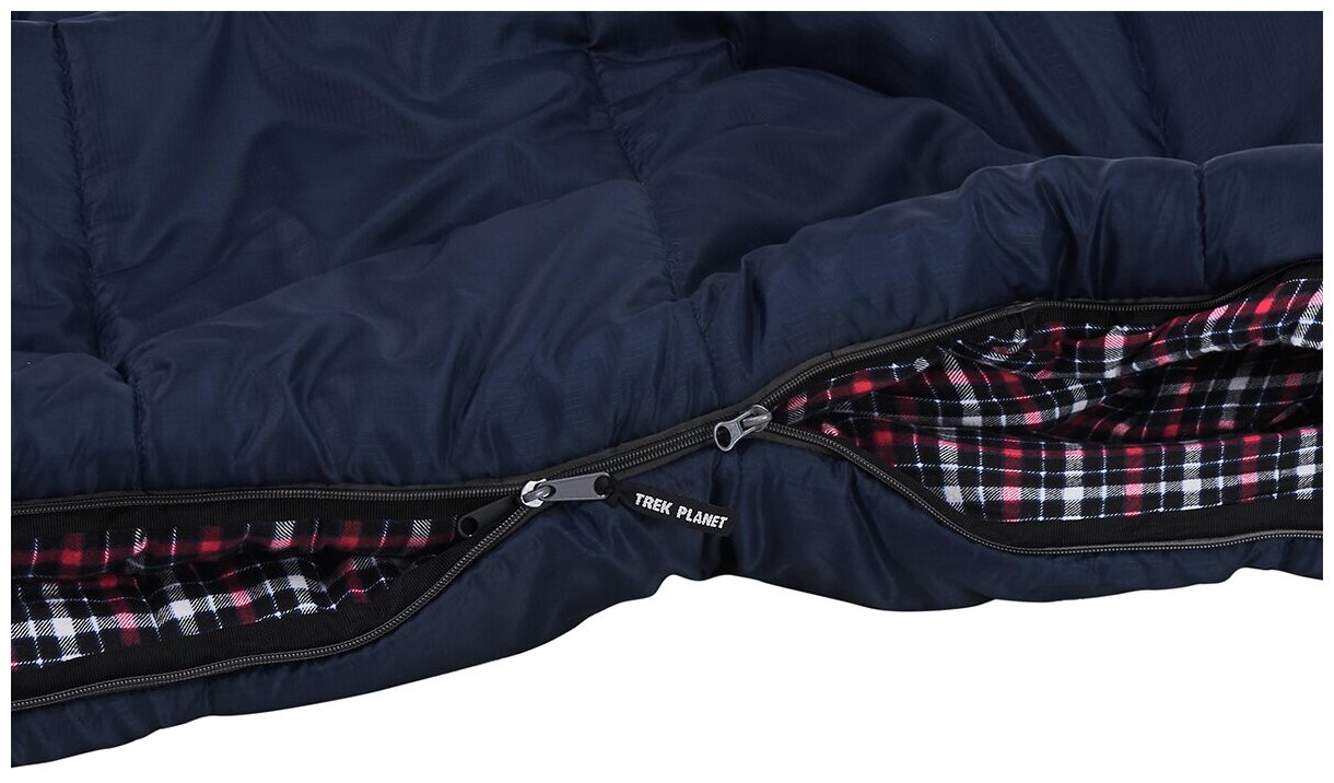 Спальный мешок TREK PLANET Belfast XL Comfort, широкий с фланелью, синий (правая молния) информация: