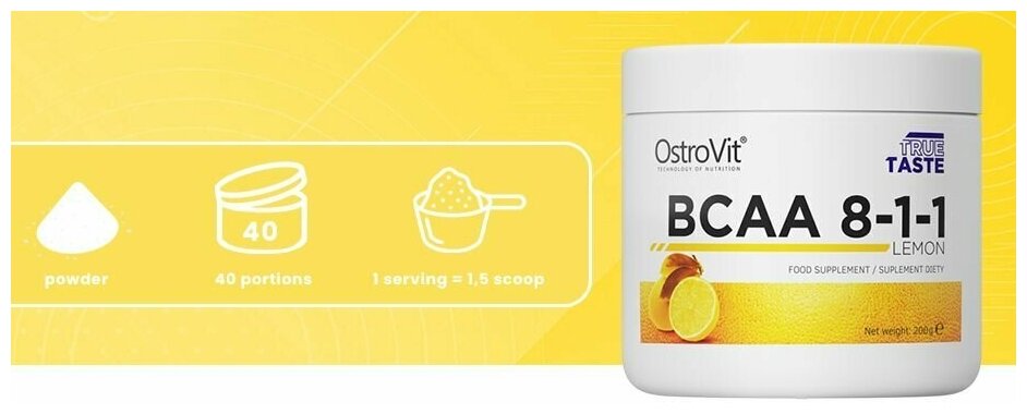 Аминокислоты BCAA ОстроВит БЦАА 2-1-1 OstroVit BCAA 8-1-1, 200 г, Лимон информация:
