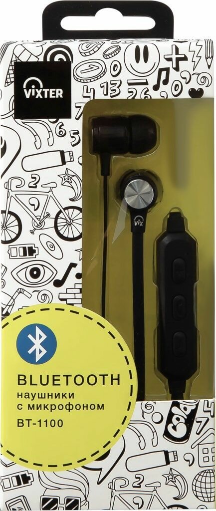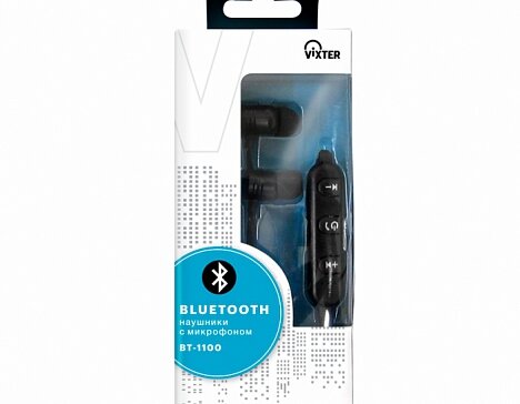 Bluetooth наушники вкладыши с микрофоном Vixter BT-1100 беспроводная мобильная гарнитура, черные информация: