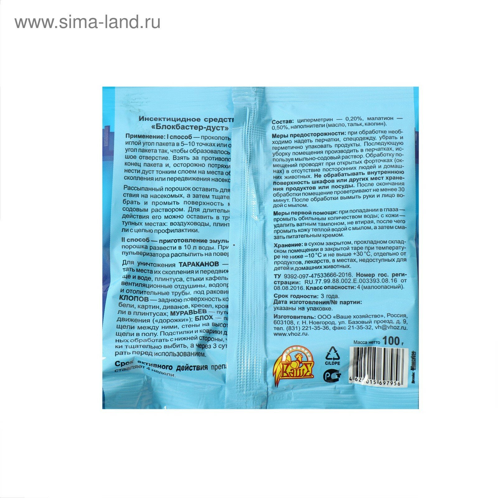 Дуст от ползающих насекомых Блокбастер XXI, 100 г информация: