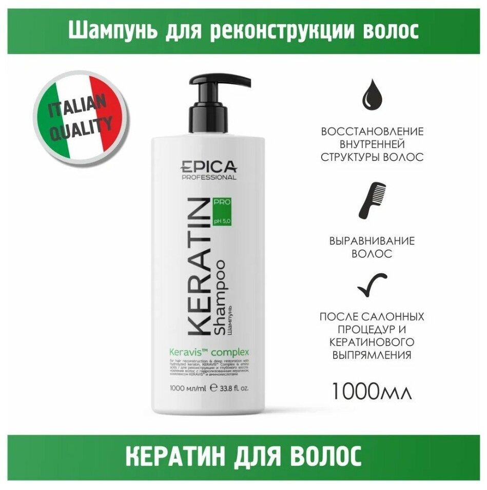 EPICA PROFESSIONAL Keratin Pro Шампунь для реконструкции и глубокого восстановления волос, с гидролизованным кератином и аминокислотами, 1000 мл