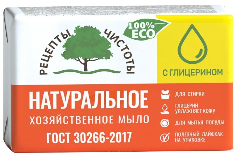 10 цен на Мыло хозяйственное Рецепты чистоты 65%, 200 г
