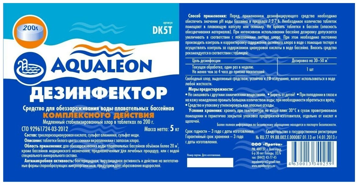 Отзывы на Дезинфектор МСХ Aqualeon (медленный стабилизированный хлор) в таблетках 200 гр., 5 кг. Химия для бассейна