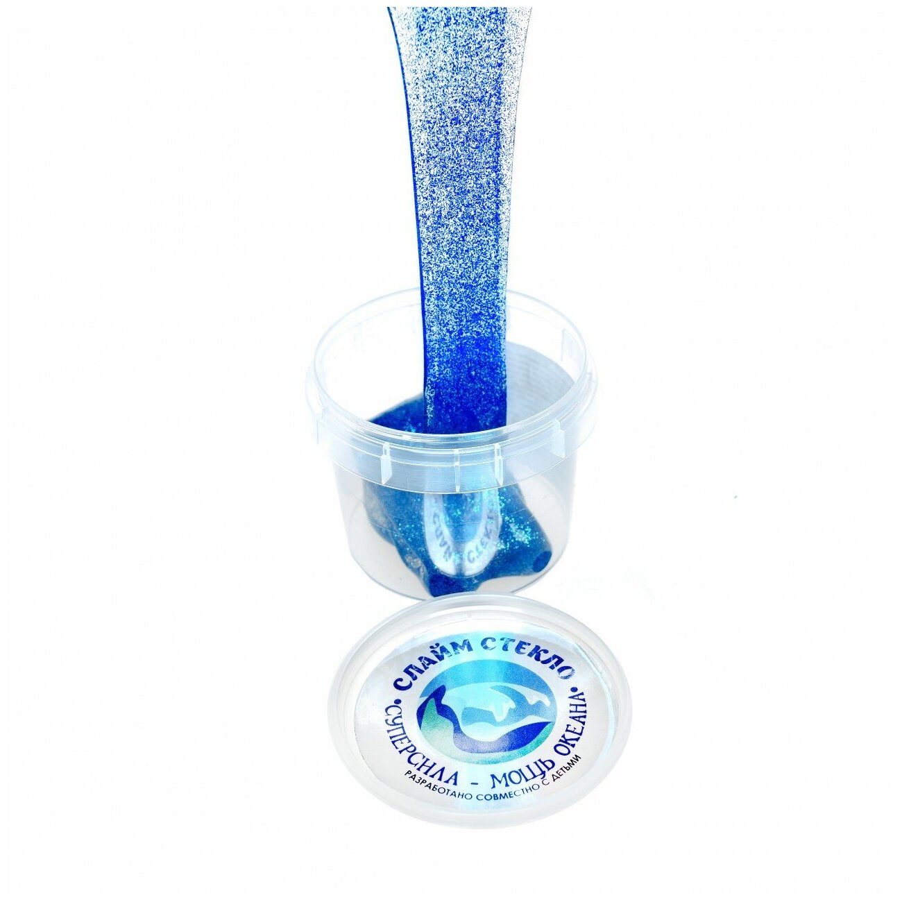 Слайм Стекло "Мощь океана" с ярко-синими блестками, 100 г (00-00001213)