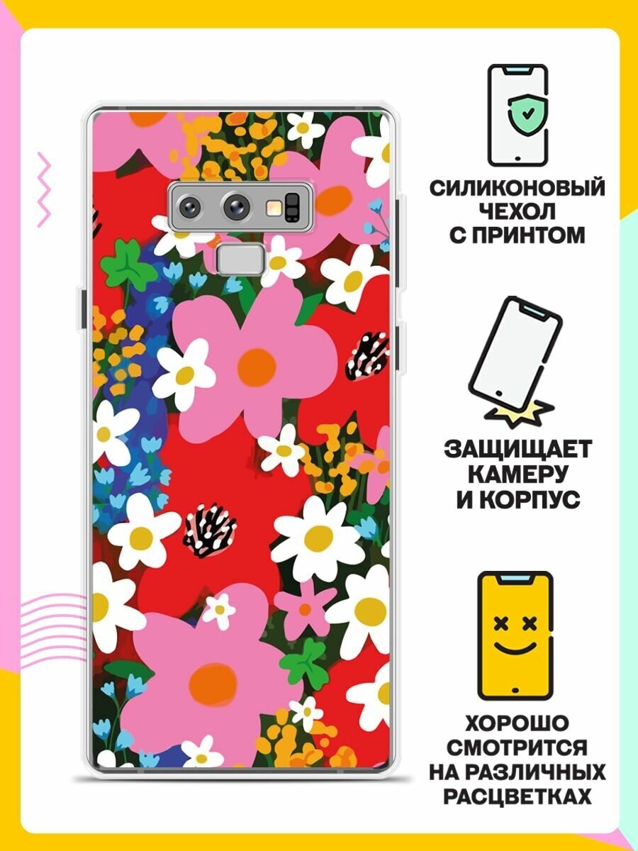 10 цен на Силиконовый чехол на Samsung Galaxy Note 9 Яркие цветы / для Самсунг Галакси Ноут 9
