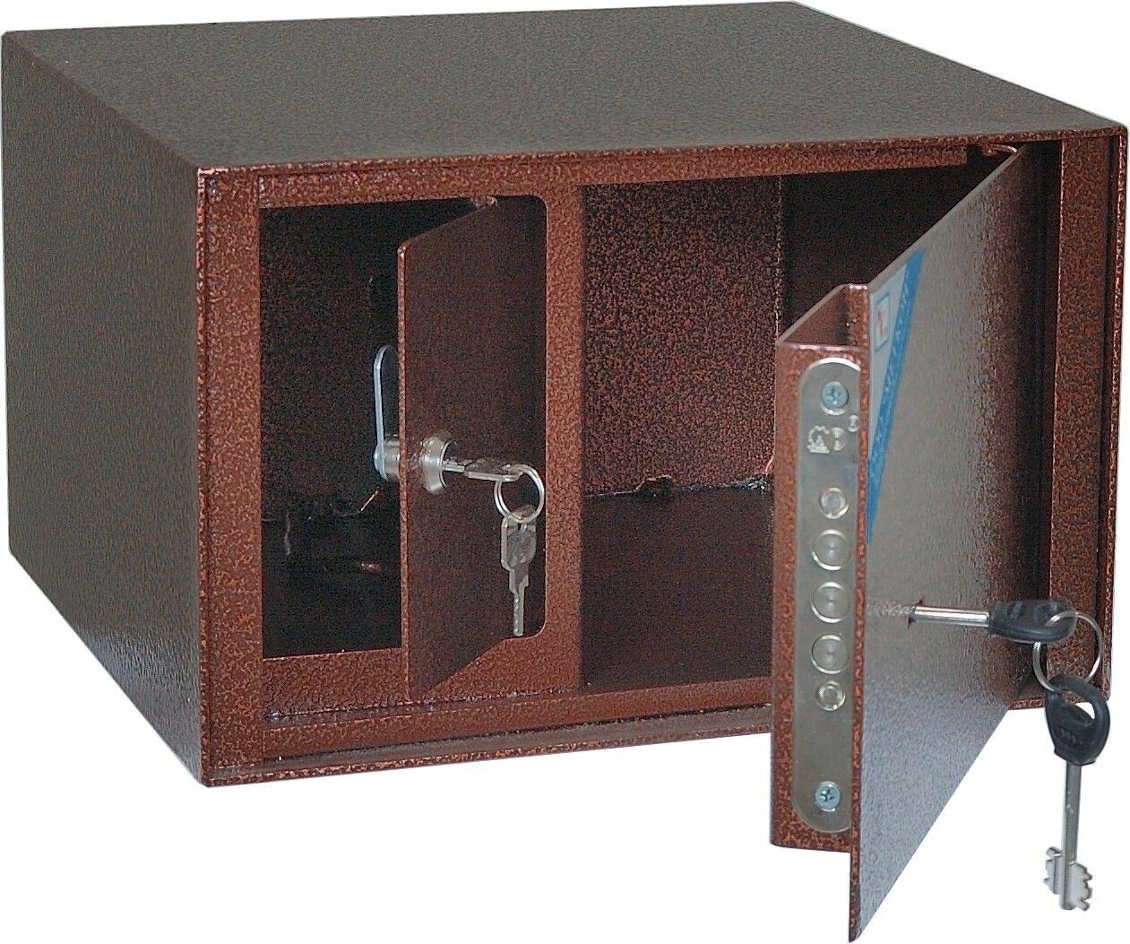 Цельностальной сейф, 3 слоя дополнительного пространства внутри, прочный и долговечный.