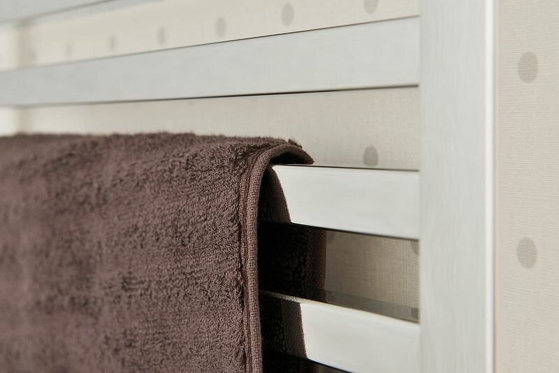 Полотенцесушитель дизайнерский электрический, профильный BAU Stella 8х80, 2 коллектора, 3 крючка (Белый DB-0071)