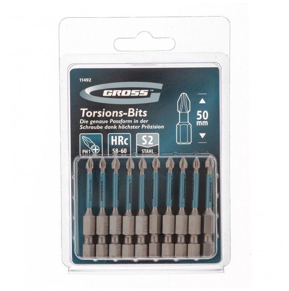 10 цен на Бита торсионная PH1 x 50 мм, для ударных шуруповертов, 10 шт. Gross