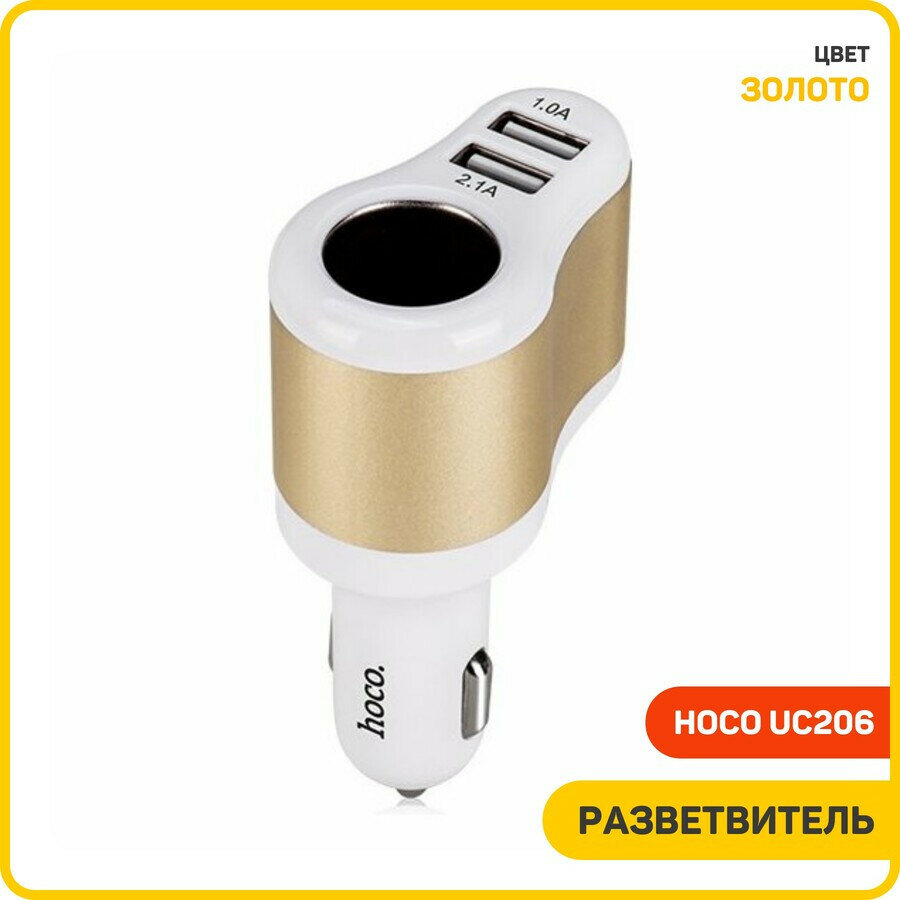 10 цен на Разветвитель прикуривателя Hoco UC206 (1 выход + 2 USB) золото