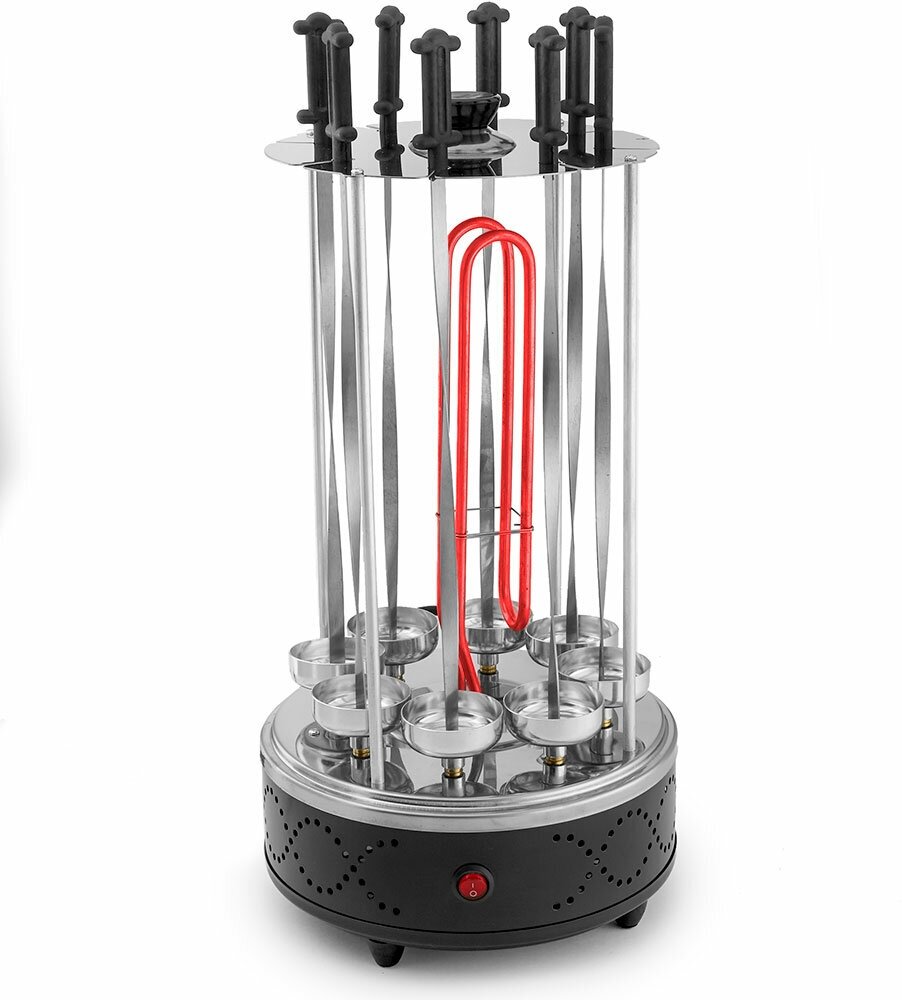 | Дополнительная информация | 8 чашечек для сбора жира; максимальная загрузка 5 кг; частота вращения шампуров 3 об/мин; функция автоматического вращения шампуров |