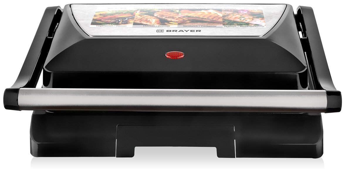 Электрогриль BRAYER BR2003, 900 Вт, фиксированные панели, серебро/черный