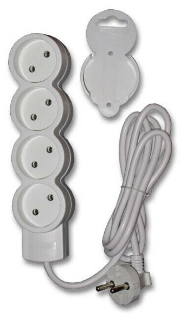 32010 6 Удлинитель бытовой, 4 гнезда, 3м, без заземления, с держателем, 2200Вт, 10А, белый, 32010 6, duwi, цена за 1 шт.
