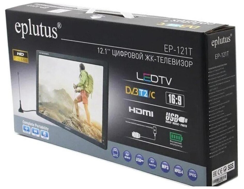 Отзывы на Автомобильный, цифровой телевизор Eplutus Model: EP-121T (S14934TEL) 12V, магнитная антенна, встроенная АКБ. Разрешение экрана: HD 1280x800