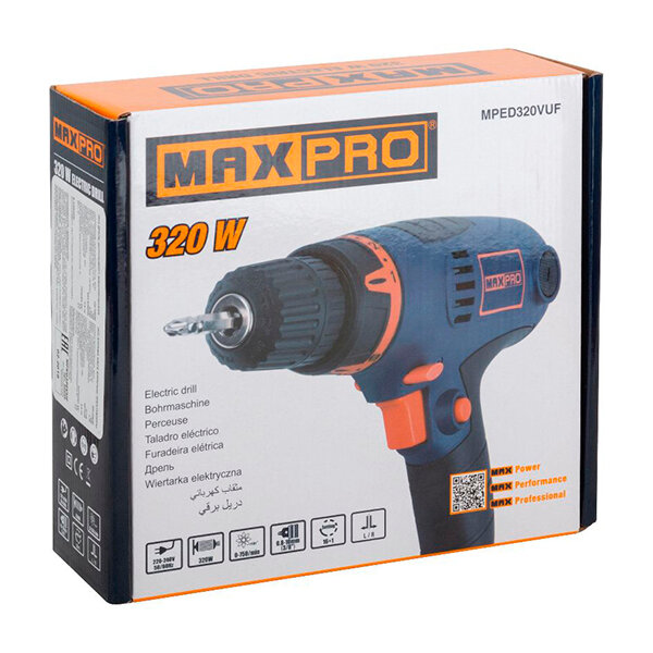 Дрель электрическая 320 Вт; 0-4200об/мин; быстрозажимной патрон 0,6-6,5мм; 1 кг; резиновые вставки. MAX-PRO информация: