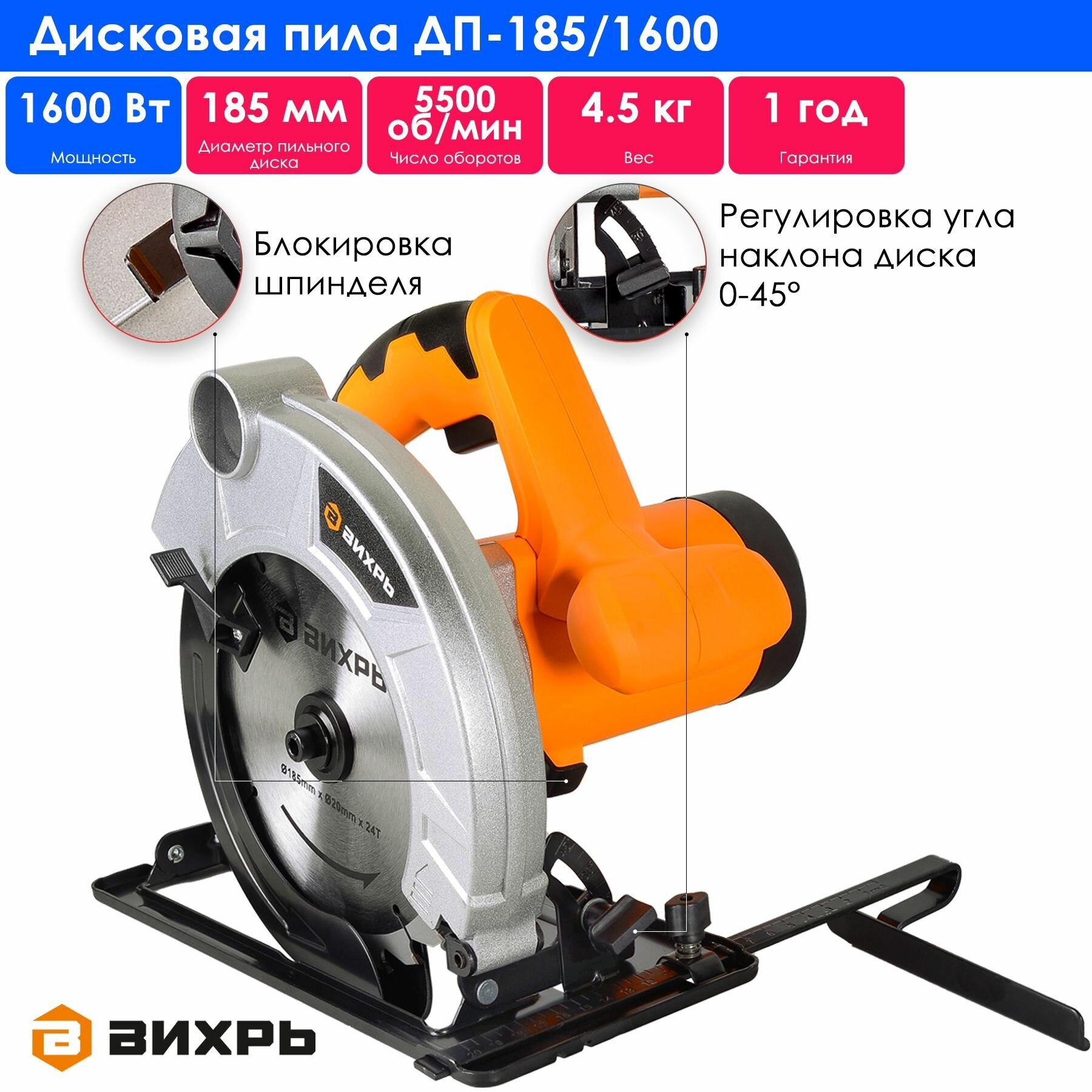 Пила циркулярная Вихрь ДП-185/1600, 1600 Вт, 185 мм 5 490 ₽