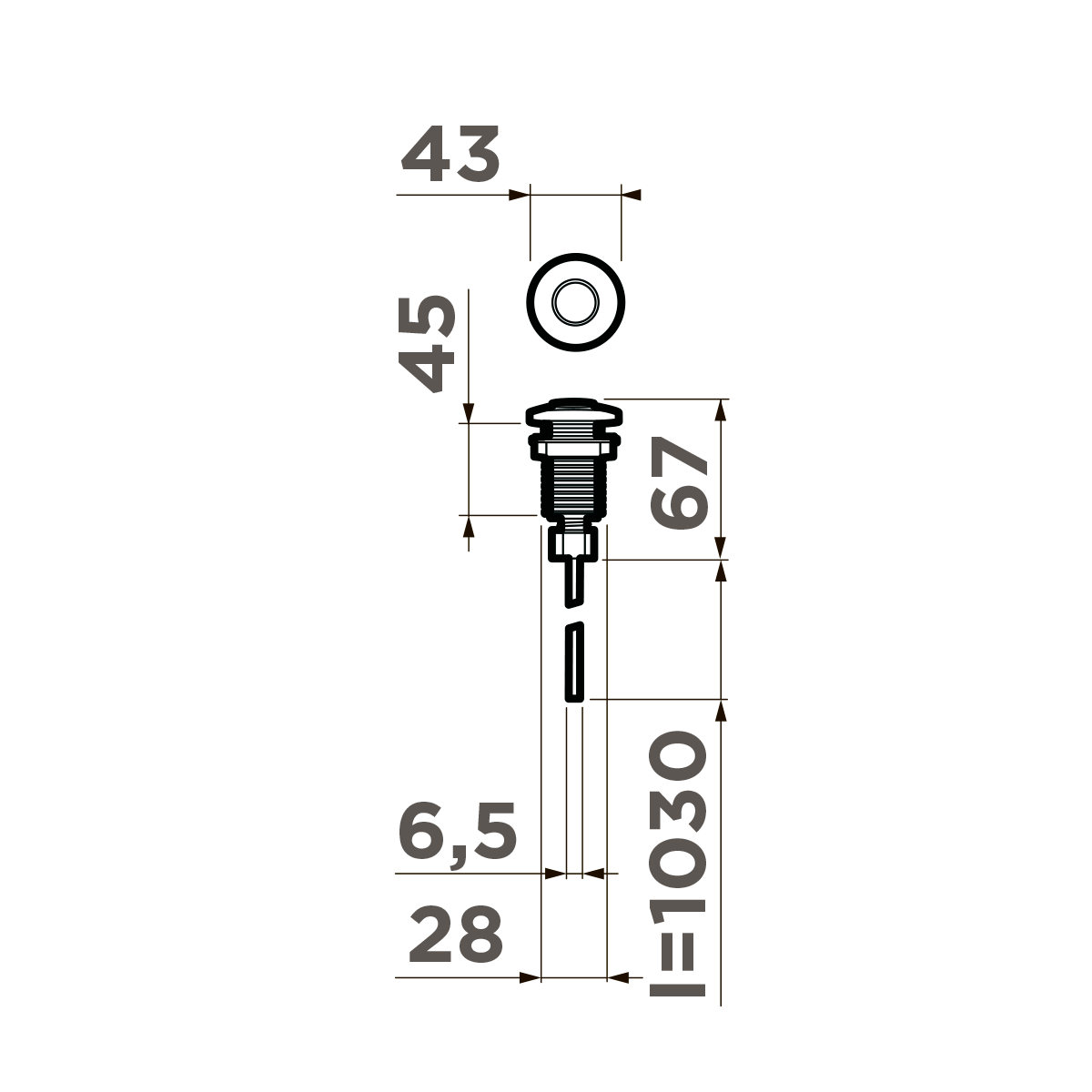 Пневматическая кнопка для измельчителя пищевых с пневмошлангом отходов длинная черная матовая D 32мм