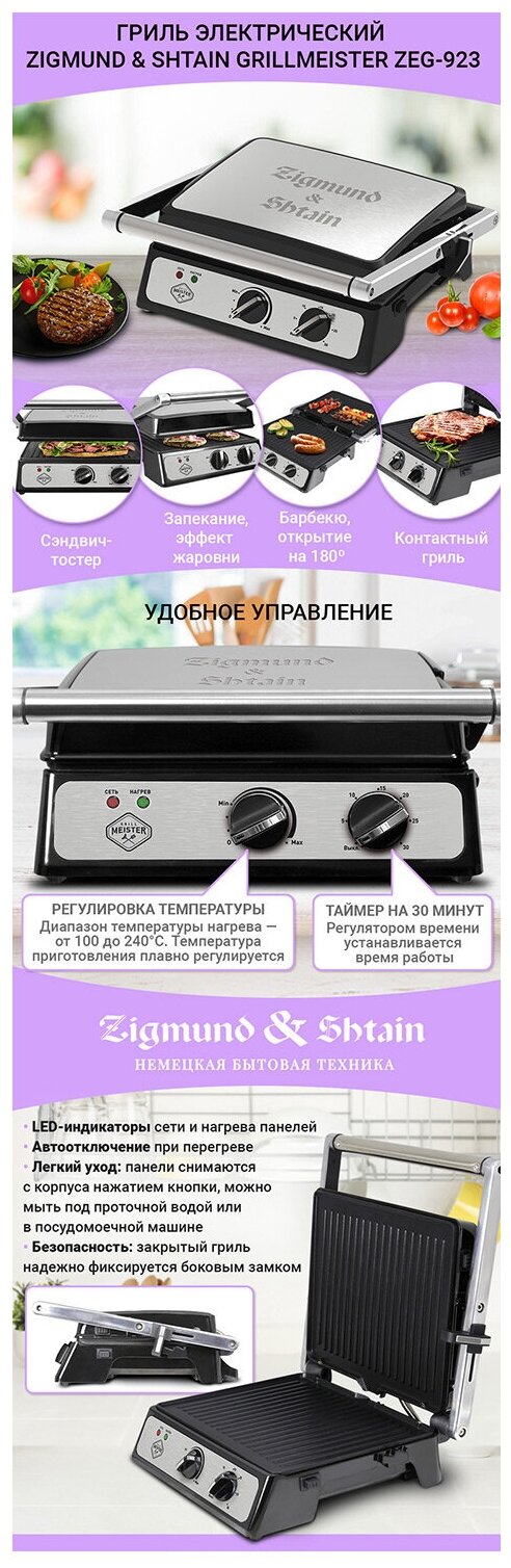 Электрический гриль Zigmund & Shtain ZEG-923 стальной информация: