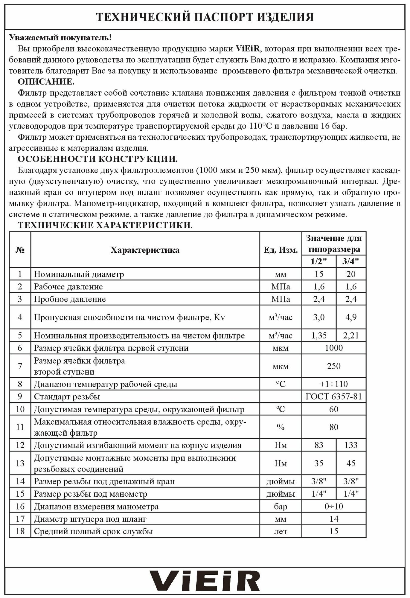 Отзывы на Фильтр для воды самопромывной с манометром, с редуктором 3/4" ViEiR (JH159), для горячей воды