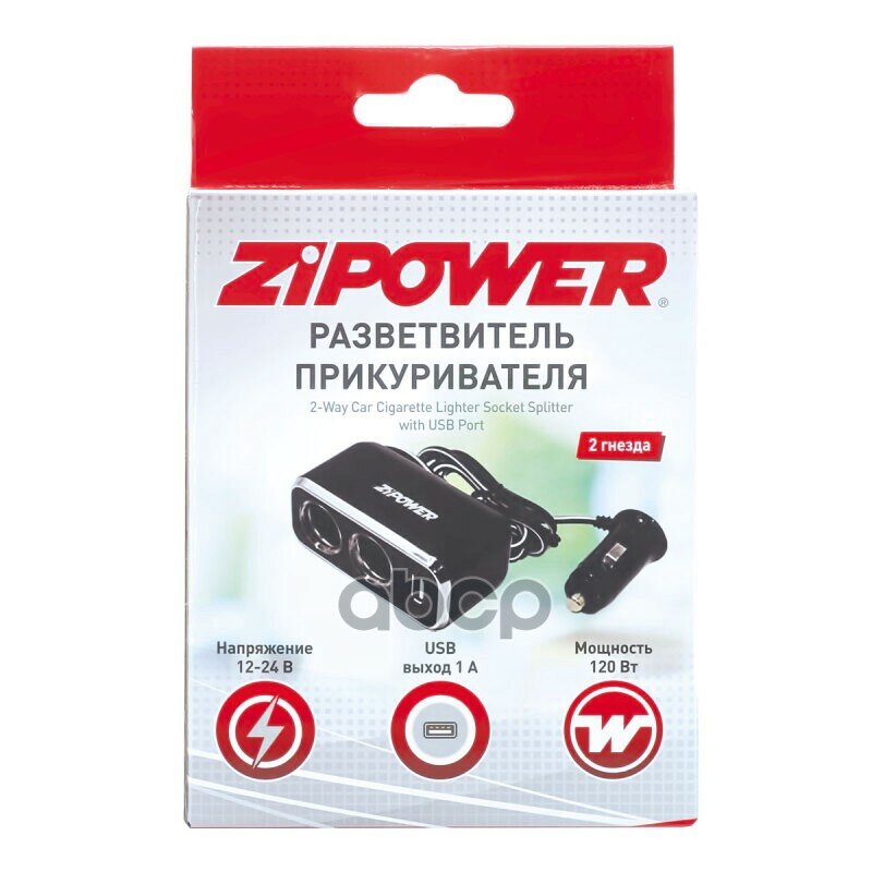 10 цен на Разветвитель в прикуриватель ZIPOWER 2 гнезда + 1 USB 1 А, 12/24 В, 120 Вт