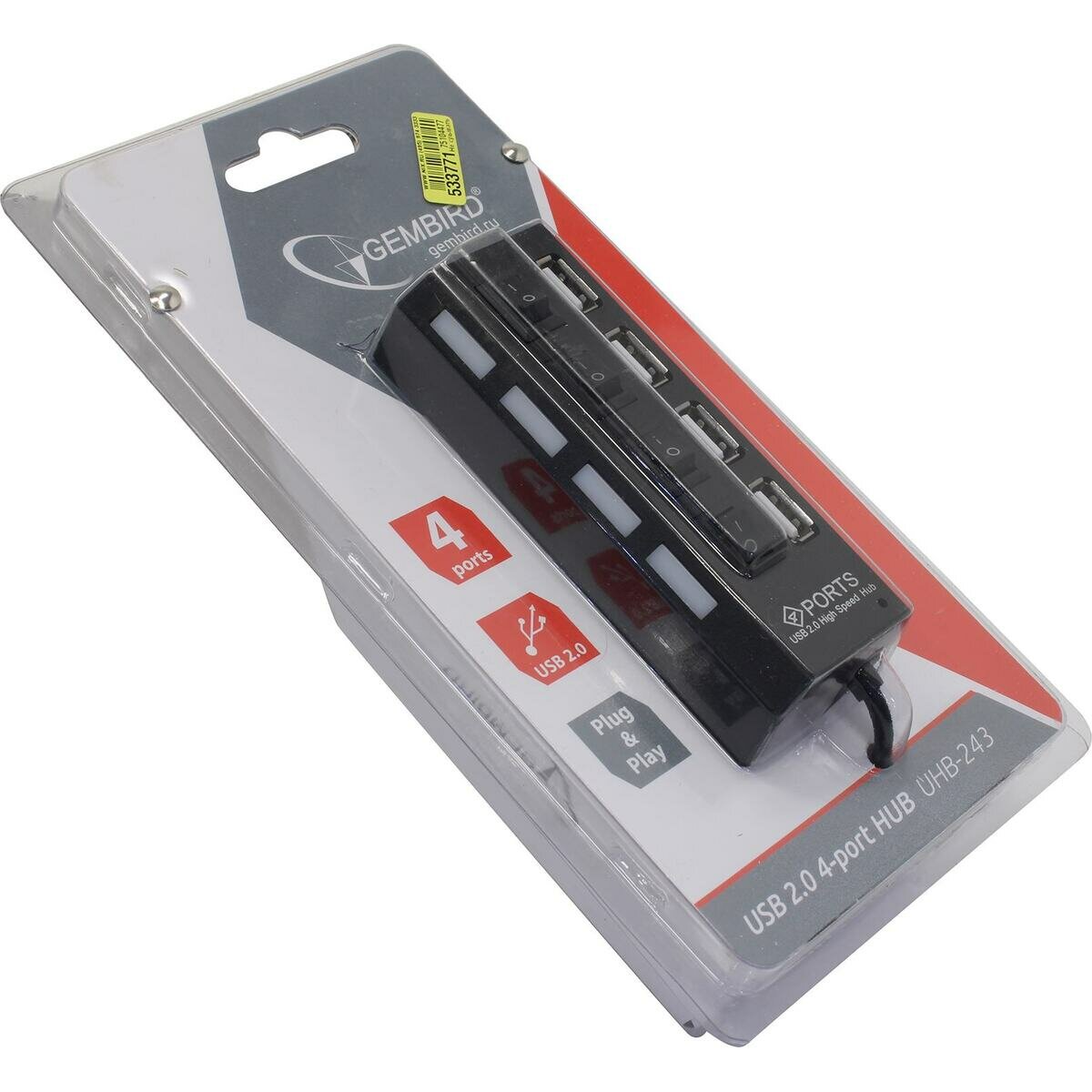 Концентратор USB 2.0 Gembird UHB-243-AD с подсветкой и выключателем, 4 порта информация: