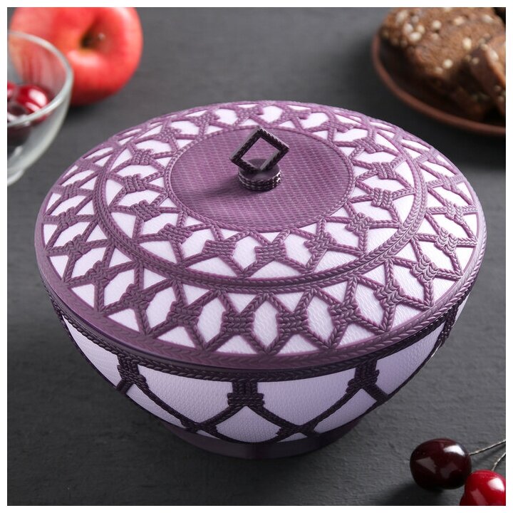 Сухарница "Арабеска" 1,7л (с крыш.) (св.фиол.-фиол.) М6500 (пластик) информация: