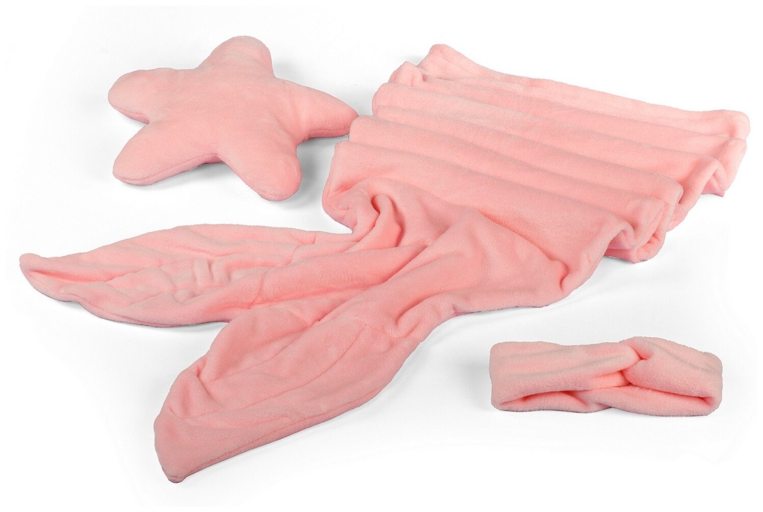 10 цен на Комплект Тутси "Сны русалки" (плед, подушка, резинка д/волос, сумка, плюш,розовый) 175х50 см