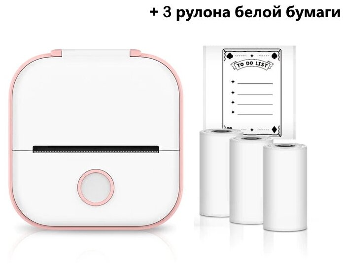 Мини принтер Phomemo T02 Pink + 3 рулона белой бумаги, карманный принтер для смартфона, розовый информация: