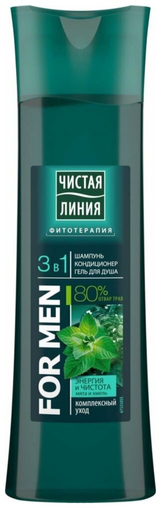 Чистая линия For Men Шампунь 3 в 1 Энергия и чистота, 400 мл / информация: