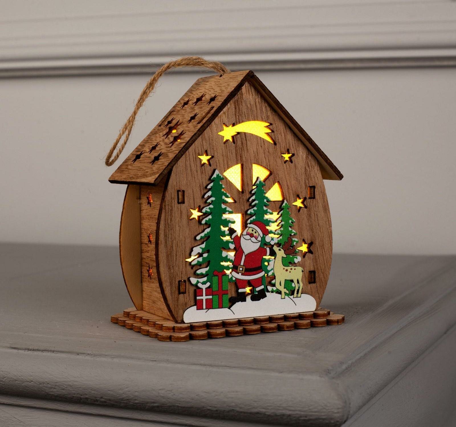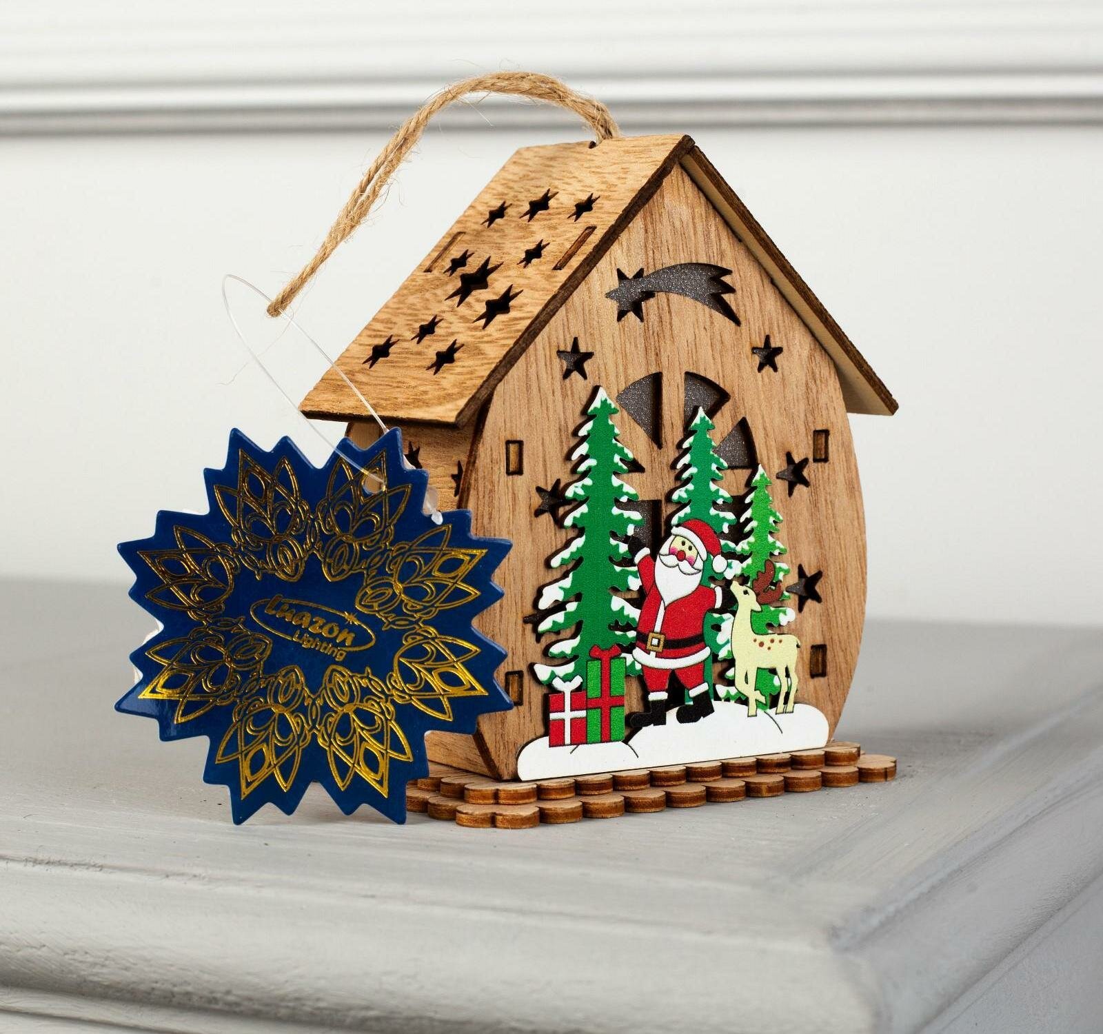 Отзывы на Luazon Lighting Ёлочная игрушка «Домик с Дедом Морозом и ёлкой», от батареек, свечение тёплое белое