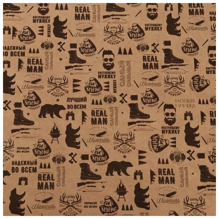 Отзывы на Набор бумаги упаковочной крафтовая «REAL MAN» , 2 листа 50 × 70 см