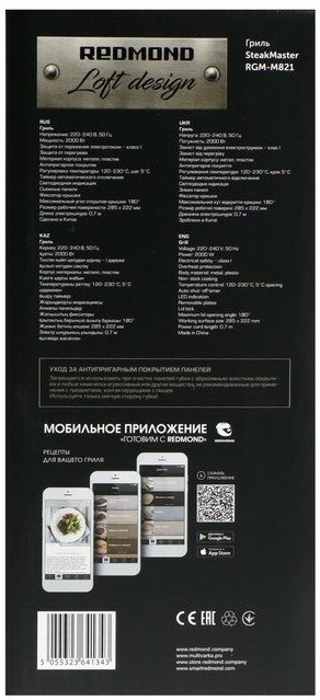 Гриль SteakMaster REDMOND RGM-M821 информация: