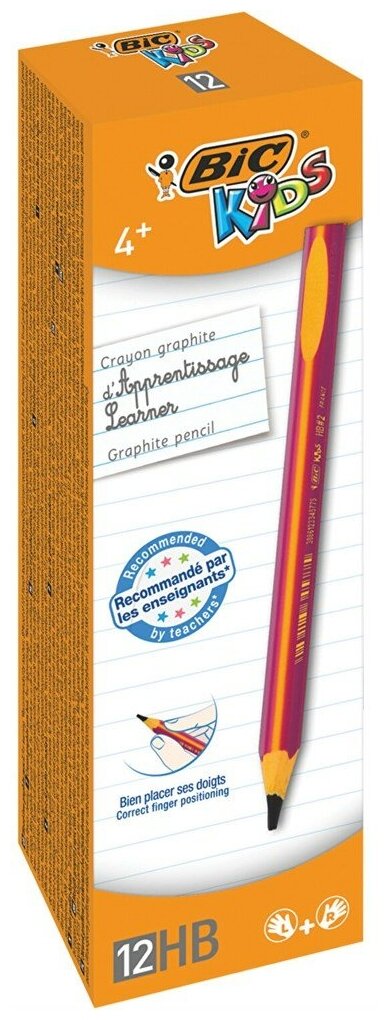10 цен на Карандаш чернографитный утолщенный BIC, 1 шт., "Kids Evolution", HB, трехгранный, корпус розовый с желтым, заточенный, 919263
