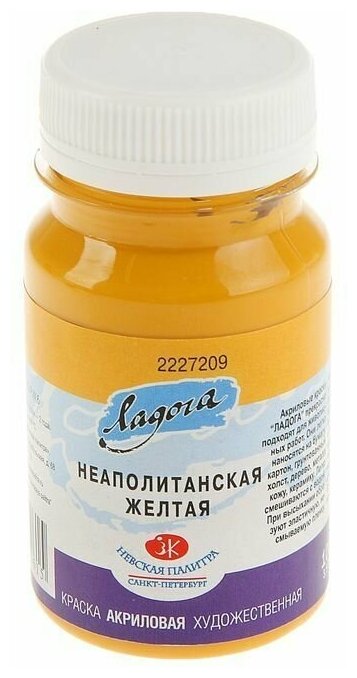Завод художественных красок «Невская палитра» Краска акриловая художественная в банке 100 мл, ЗХК "Ладога", неаполитанская жёлтая, 2227209