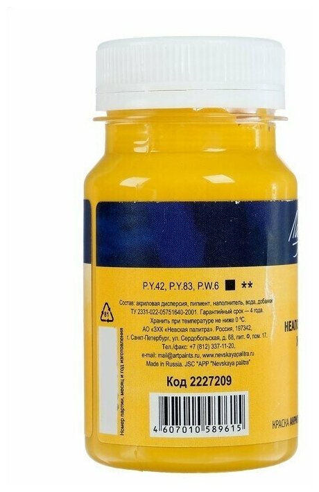 Завод художественных красок «Невская палитра» Краска акриловая художественная в банке 100 мл, ЗХК "Ладога", охра золотистая, 2227205