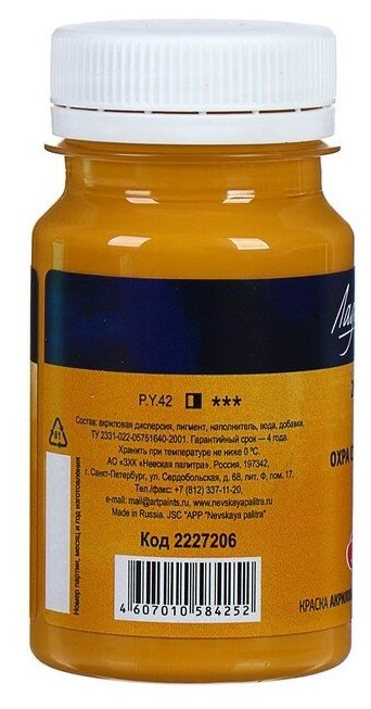 Завод художественных красок «Невская палитра» Краска акриловая художественная в банке 100 мл, ЗХК "Ладога", охра золотистая, 2227205